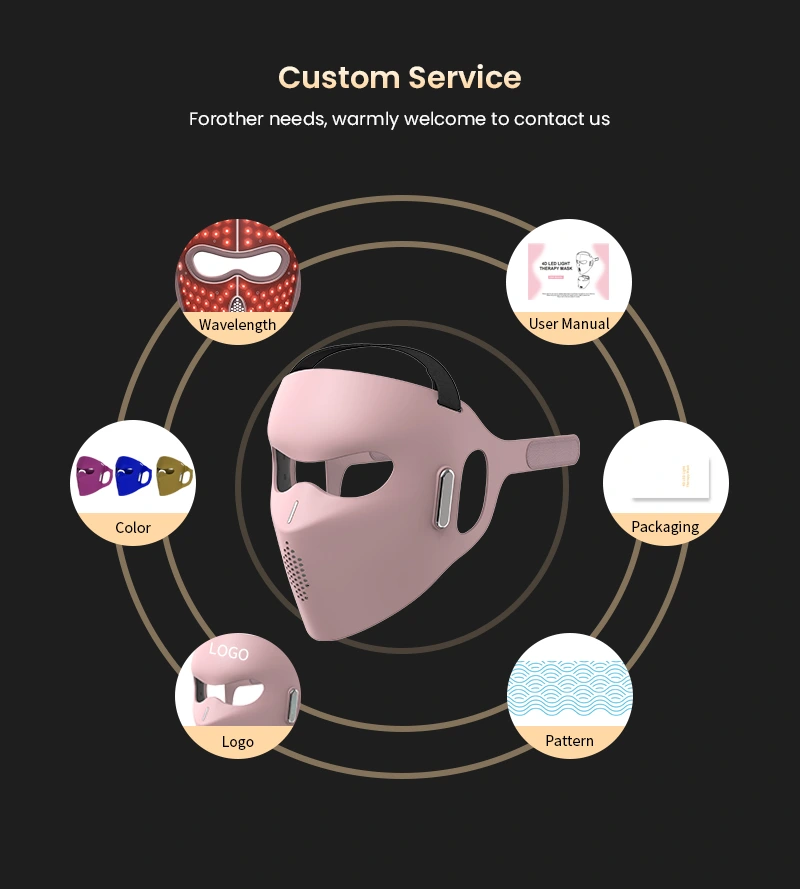 3. Modalità terapeutiche:• Modalità di riparazione: 630nm per 10 minuti • Modalità di ringiovanimento della pelle: 590 + 630nm per 10 minuti • Modalità anti-invecchiamento: 630 + 850/1072nm per 10 minuti | |